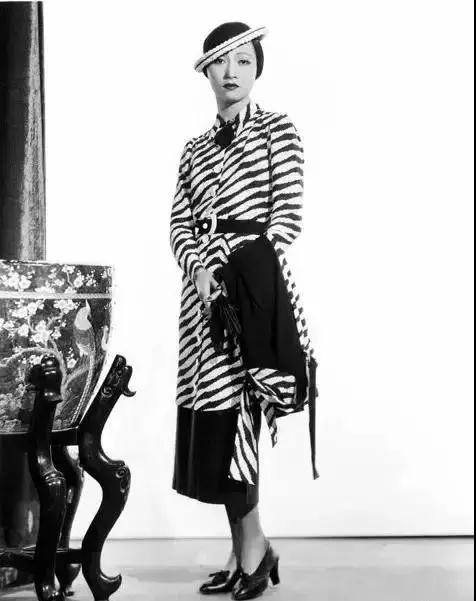 民国第一位进入好莱坞的女明星黄柳霜。斑马纹的大衣,黑白小礼帽,复古式粗跟鞋。这身打扮放在现在都丝毫不输时装秀上的那些明星。